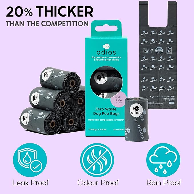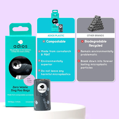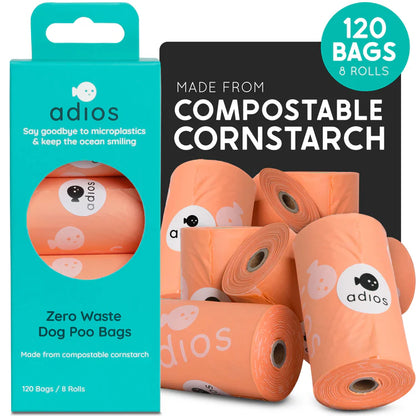 Zero waste, Home-Compostable Dog Poo Bags made from non-genetically modified cornstarch. Choose your bag type, colour and pack size and start saying adios to plastic!