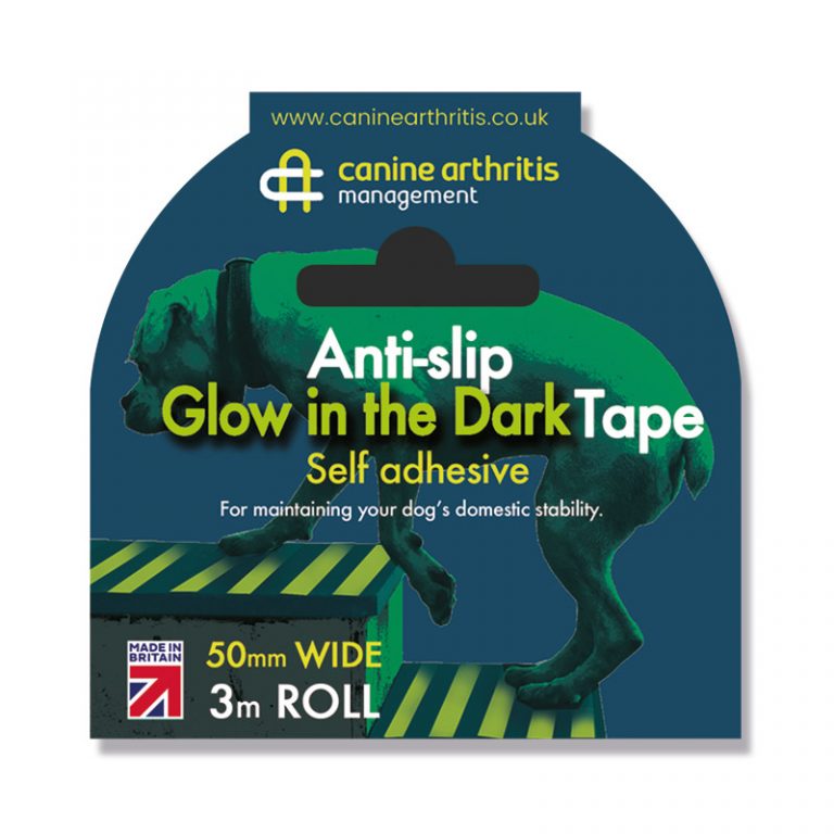 This innovative, injury reduction photo-luminescent adhesive anti-slip tape reduces the risk of your dog (and yourself) slipping on potential poor traction surfaces at home or in the workplace.