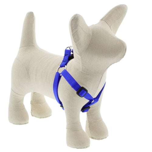 The Step-in dog harness is a popular style of non-restrictive harness with three adjustment points at the front, back and sternum and a double-D-ring to attach the lead to. It's easy to fit as you simply have your dog step into it and then clip it on the back. Made from strong woven nylon, with quality fittings and to high standards of craftsmanship.