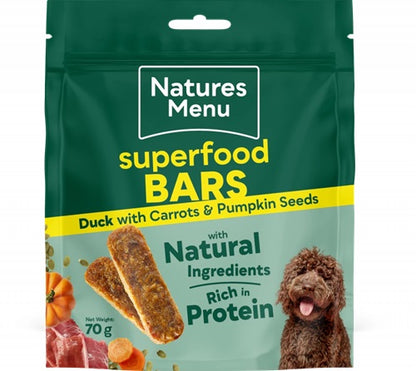 Nutritious air-dried bars made with succulent meat or fish and enriched with extra fruits, vegetables and superfoods for a perfect healthy snack. Ideal for a bedtime routine!