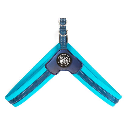 For the best fit, the harness can also be infinitely adjusted (6cm) on the dark blue polyester strap. Stepping in is quick and easy, attached the leash to the two opposite D-rings and you are ready to go!